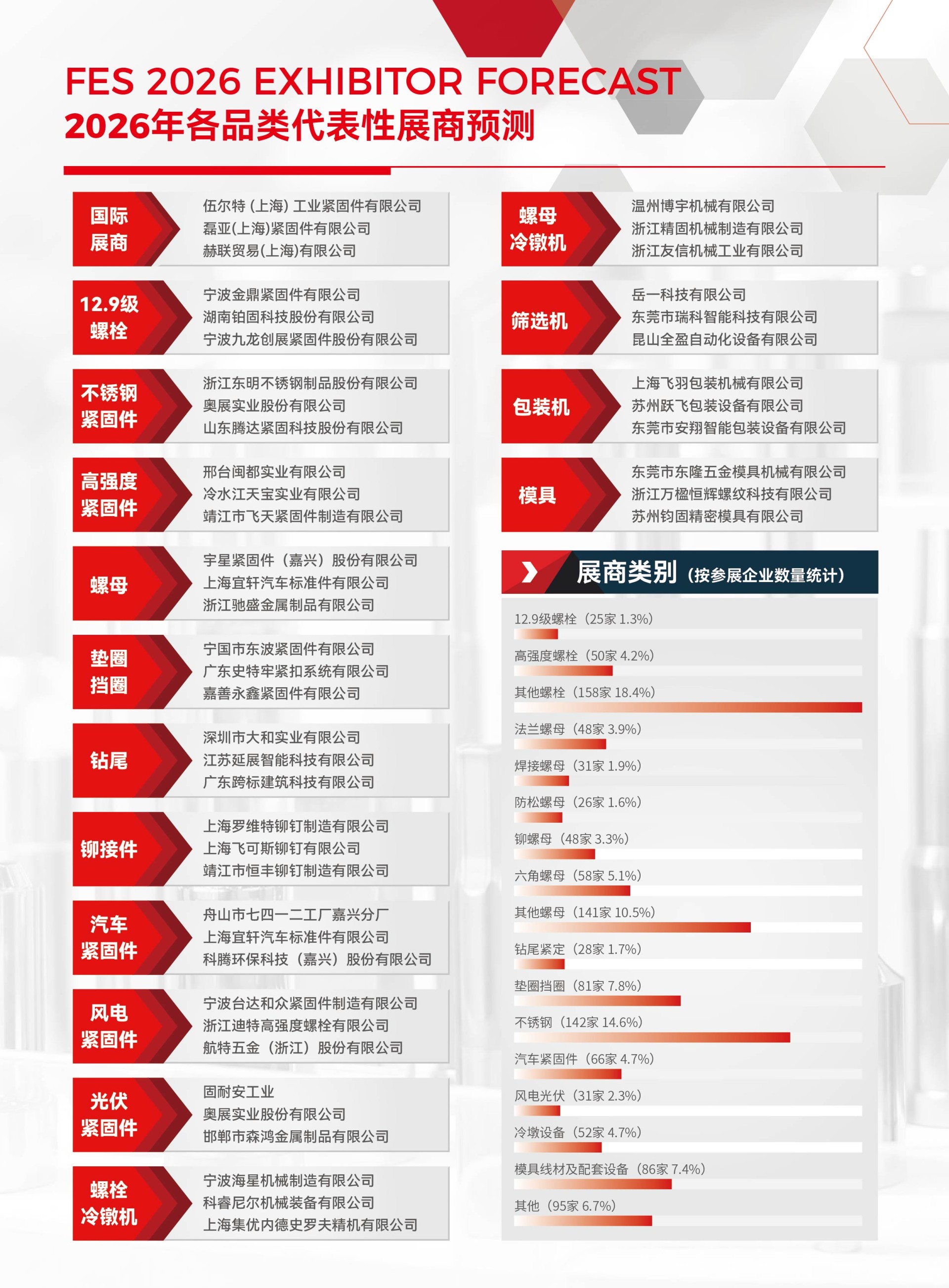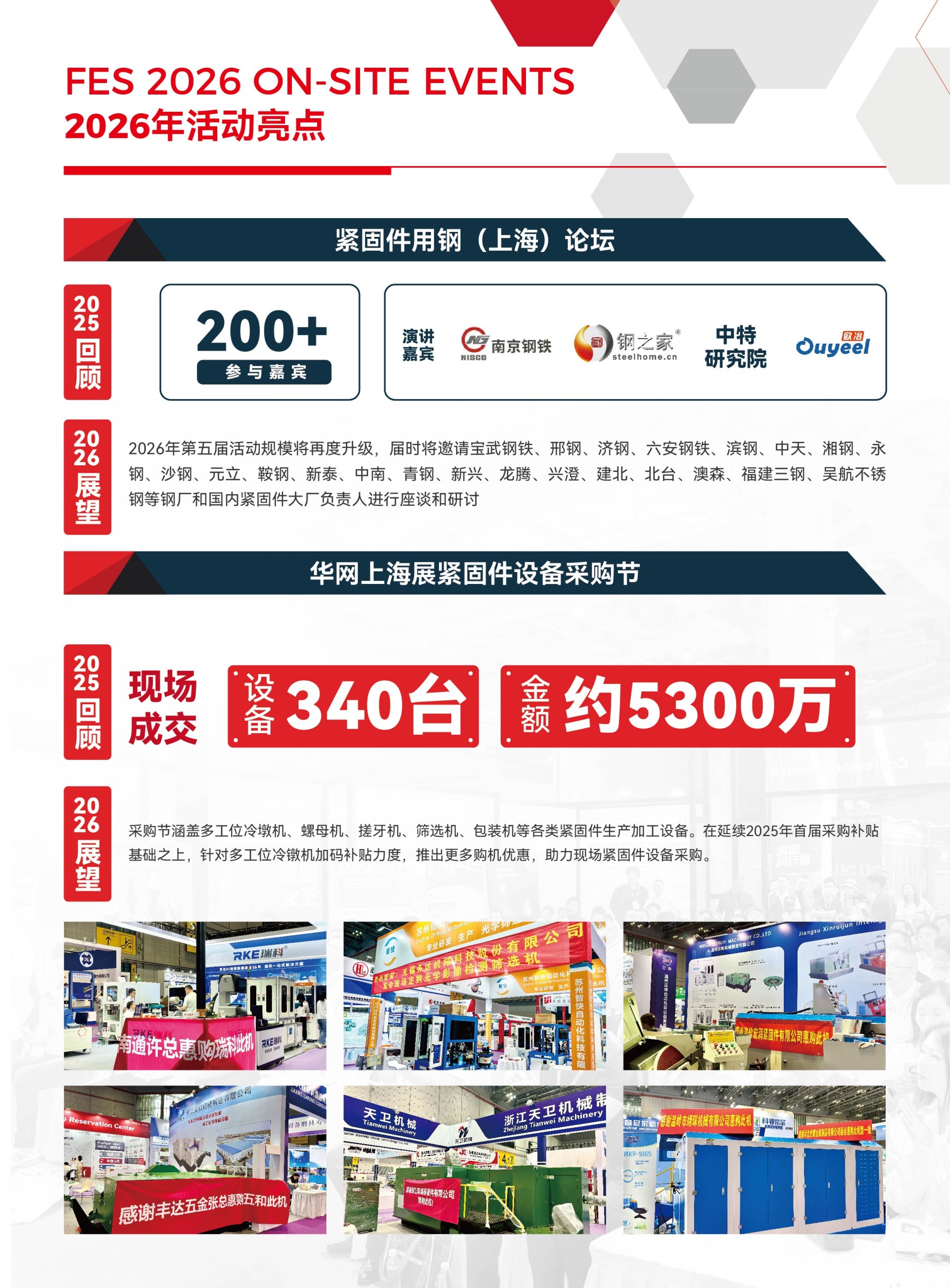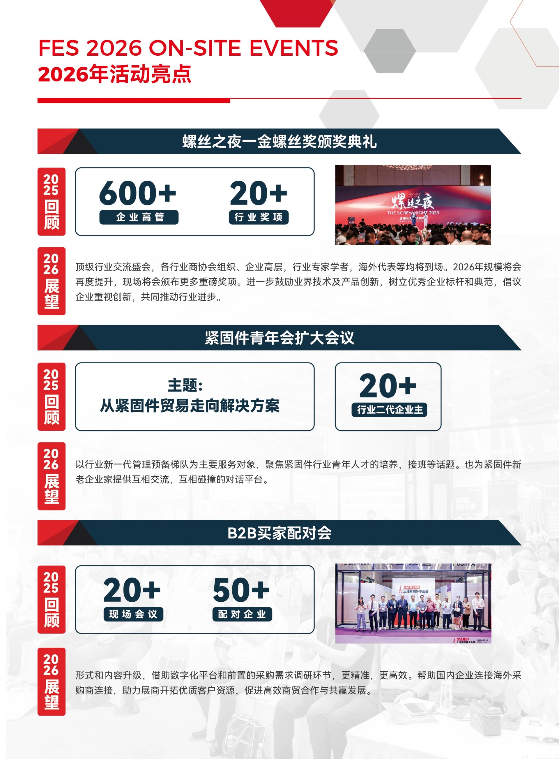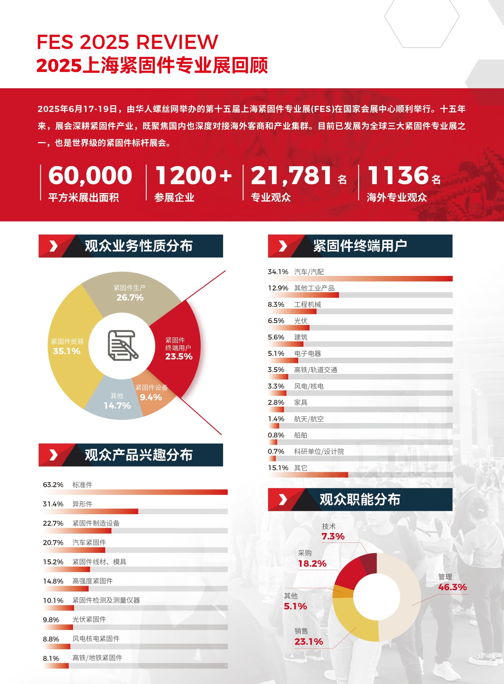 上海紧固件专业展(FES)作为紧固件行业的盛会,自2010年创办以来每年持续以“匠心”精神打造一个高水平的紧固件专业展,致力于以专业化、国际化的视角呈现一站式紧固件行业全方位的展示平台。