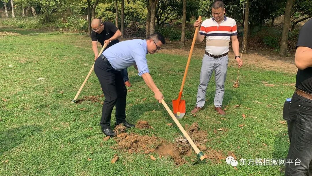 短短两个小时的时间,大家挥锄舞锹,培土浇水,合力种下了50颗苗木,一棵棵新栽的树苗亭亭玉立,展现出勃勃生机。
