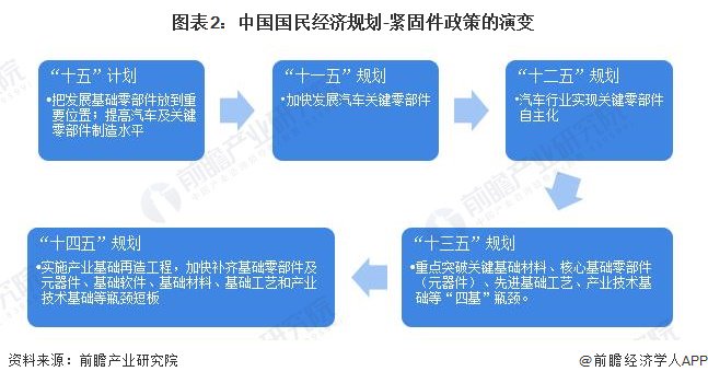 紧固件是应用最广泛的机械基础件,被誉为“工业之米”,是各个工业领域不可或缺的重要零部件之一。根据我国国民经济“十五”计划至“十四五”规划,国家对紧固件行业的支持政策经历了从“重点发展汽车零部件”到“重点突破核心基础零部件”再到“补齐基础零部件短板”的变化。