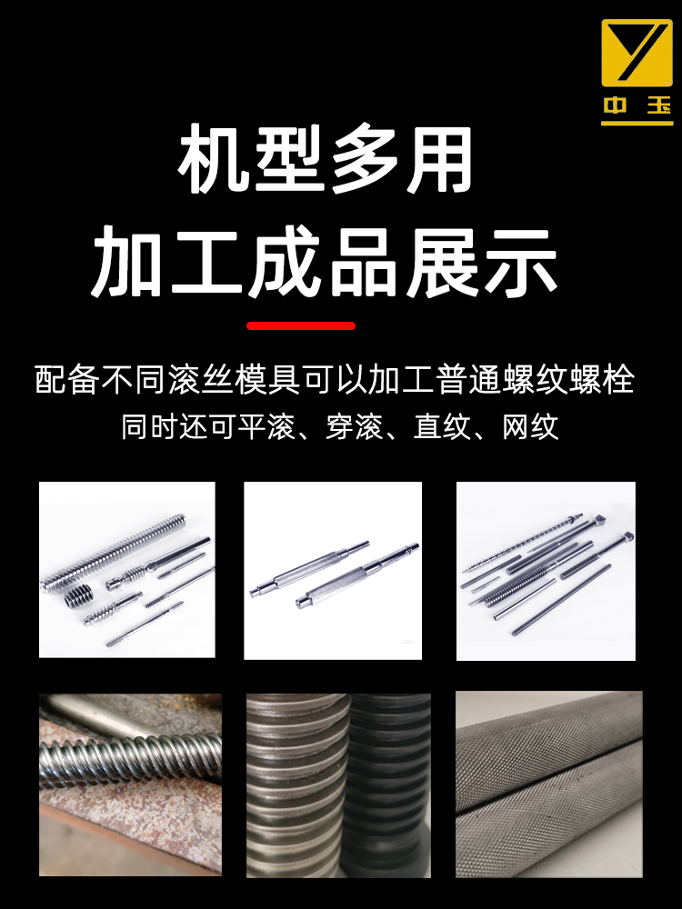 本机主要用于滚压各种精密外螺纹,也可用于滚压小模数蜗杆、花键小模数螺旋齿轮、油槽、滚花、杆件矫直、滚压成形等。适用于各类企业大批量生产
