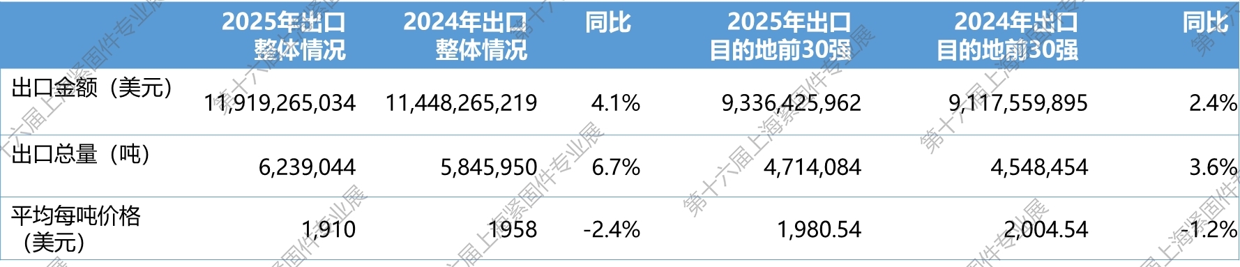 上海紧固件专业展权威发布,2025年中国紧固件行业出口形势分析