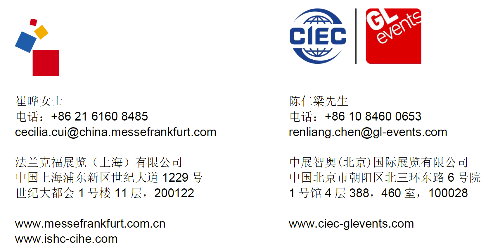 同系列展会还包括ISH Shanghai & CIHE-上海国际供热通风空调及舒适家居系统展览会(简称:上海供热展)。欲知更多中国供热展和上海供热展的详情,请浏览:www.ishc-cihe.com。